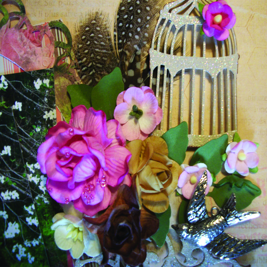 I just couldn't help myself, I added three flowers on the layout. But it's only three and I toned them down by dabbing a touch of gesso to them.